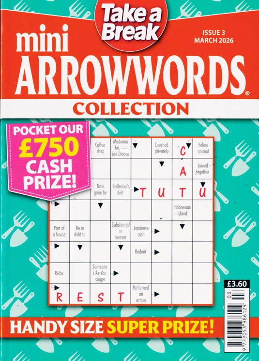 Buy a single copy of TAB MINI ARROWWORDS COLL or a subscription of your desired length, delivered worldwide. Current issues sent same day up to 3pm! All magazines sent by 1st Class Mail UK or 48 Hour tracked UK & by Airmail worldwide (bar UK over 750g which may go 2nd Class).
