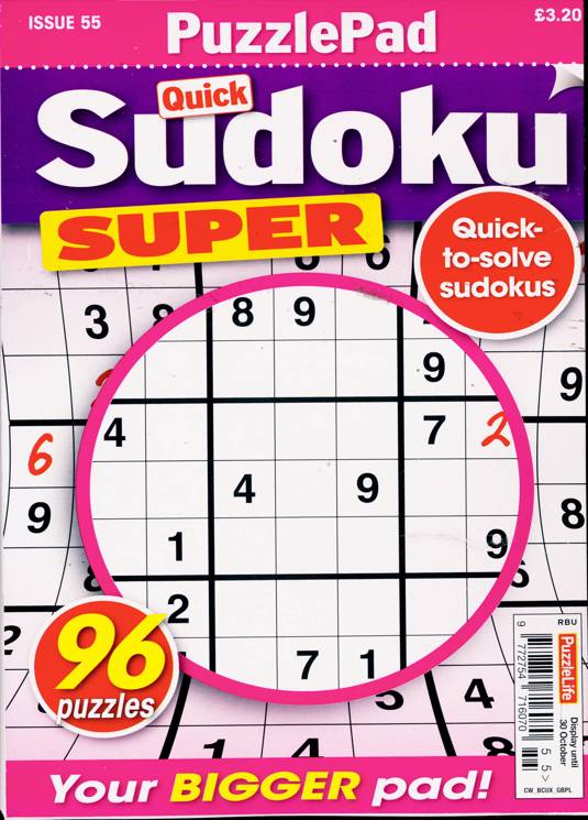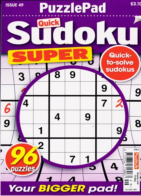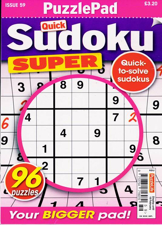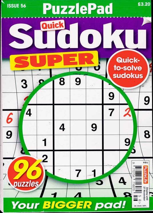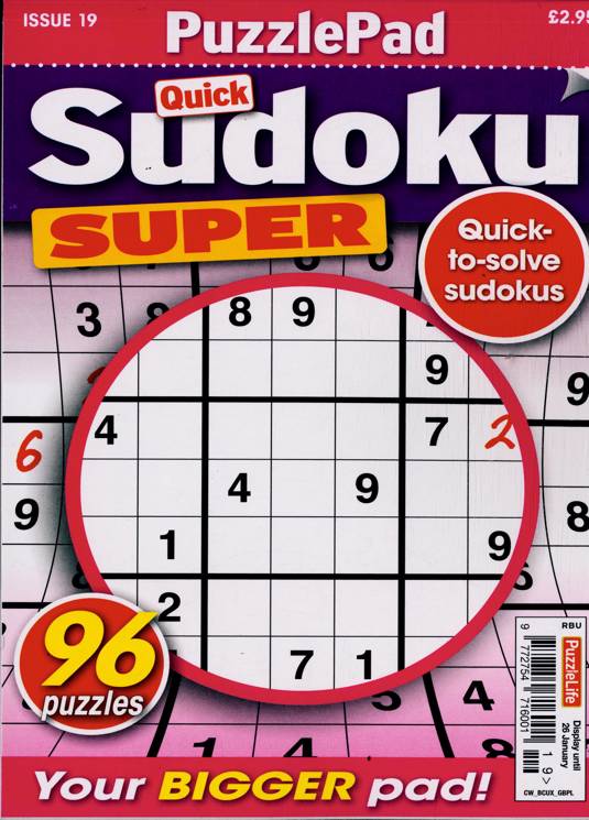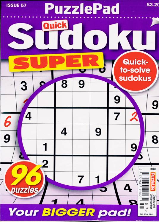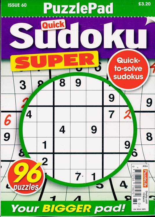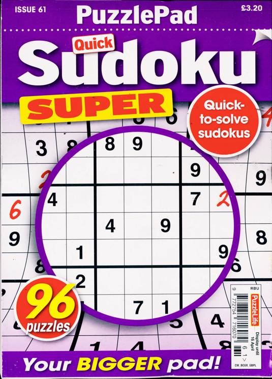 Buy a single copy of PUZZLELIFE SUDOKU SUPER or a subscription of your desired length, delivered worldwide. Current issues sent same day up to 3pm! All magazines sent by 1st Class Mail UK or 48 Hour tracked UK & by Airmail worldwide (bar UK over 750g which may go 2nd Class).