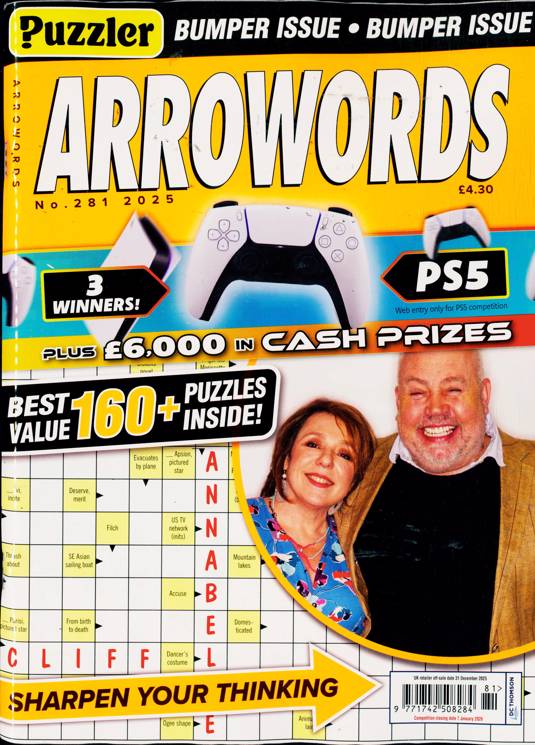 Buy a single copy of PUZZLER ARROWORDS or a subscription of your desired length, delivered worldwide. Current issues sent same day up to 3pm! All magazines sent by 1st Class Mail UK or 48 Hour tracked UK & by Airmail worldwide (bar UK over 750g which may go 2nd Class).