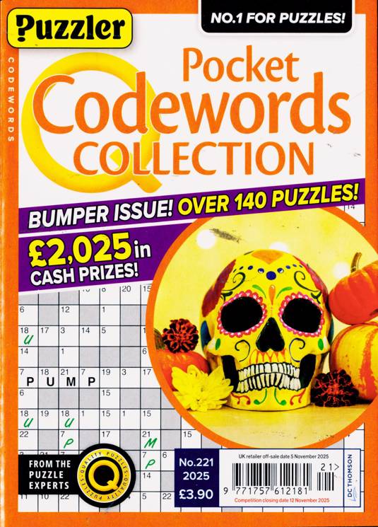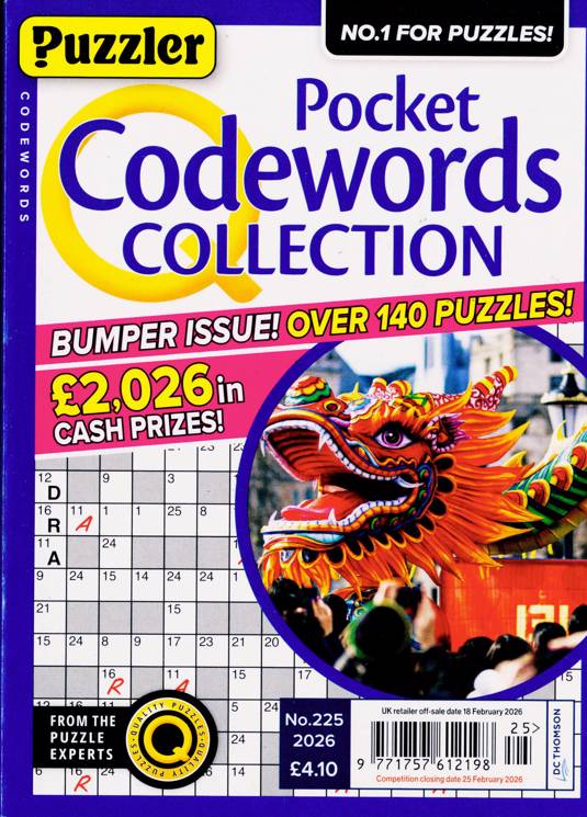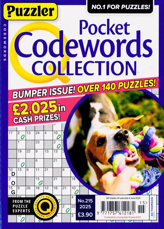 Buy a single copy of PUZZLER Q POCK CODEWORDS C or a subscription of your desired length, delivered worldwide. Current issues sent same day up to 3pm! All magazines sent by 1st Class Mail UK or 48 Hour tracked UK & by Airmail worldwide (bar UK over 750g which may go 2nd Class).