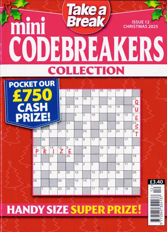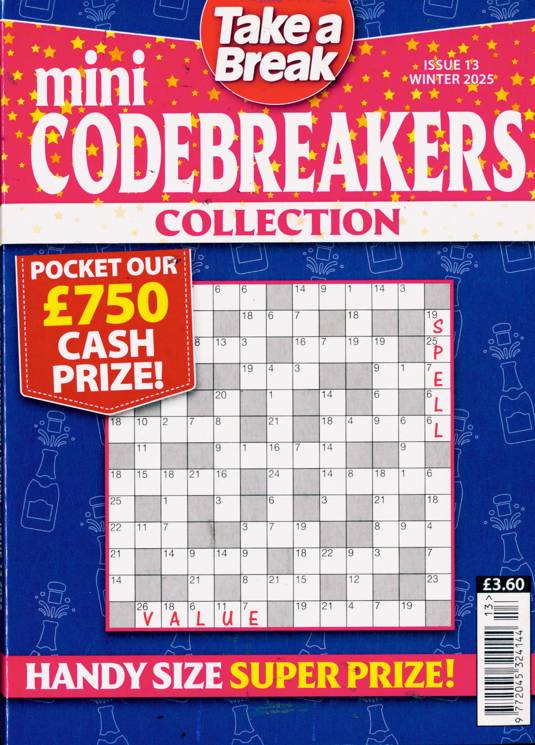 Buy a single copy of TAB MINI CODEBREAKERS COLL or a subscription of your desired length, delivered worldwide. Current issues sent same day up to 3pm! All magazines sent by 1st Class Mail UK or 48 Hour tracked UK & by Airmail worldwide (bar UK over 750g which may go 2nd Class).