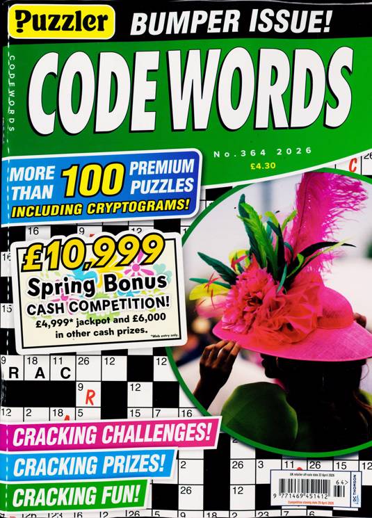 Buy a single copy of PUZZLER CODEWORDS or a subscription of your desired length, delivered worldwide. Current issues sent same day up to 3pm! All magazines sent by 1st Class Mail UK or 48 Hour tracked UK & by Airmail worldwide (bar UK over 750g which may go 2nd Class).